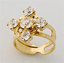 Anel ajustável folheado a ouro com uma pedra maior de strass no centro, rodeada com outras 4 pedras de strass.